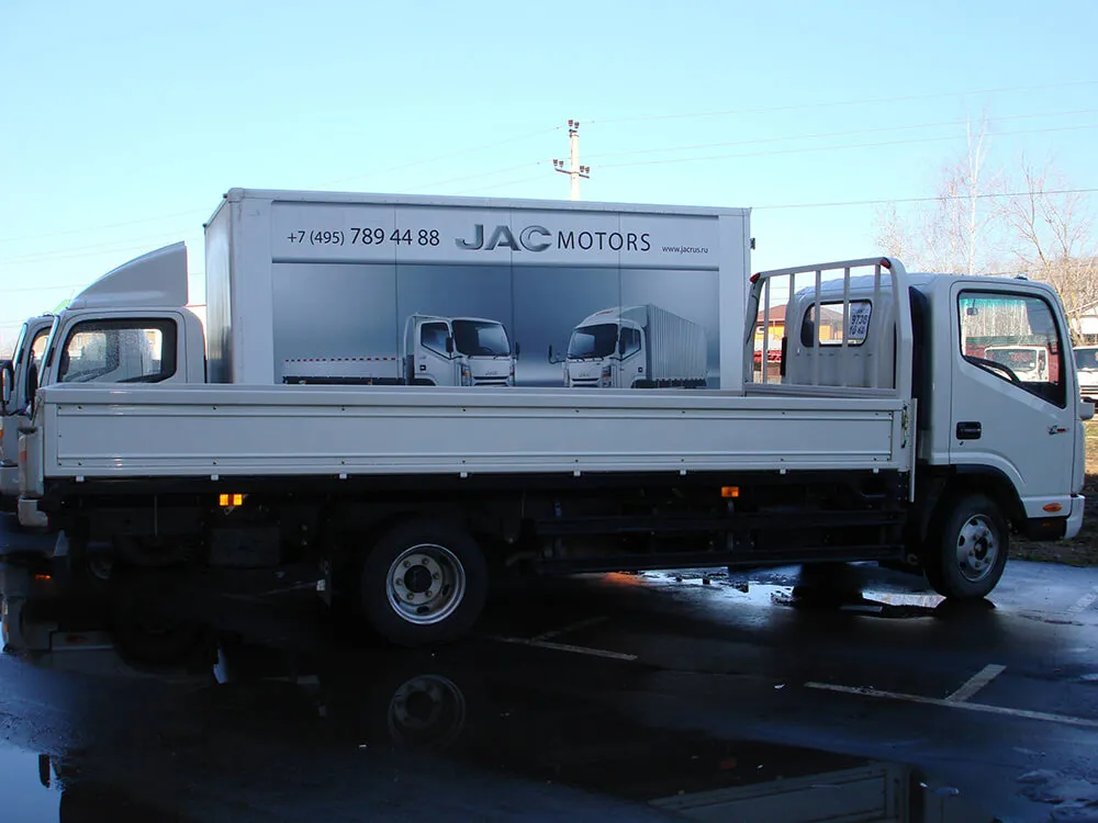 Бортовая платформа на шасси JAC N 75 – среднетоннажный грузовик для перевозки грузов различного назначения массой до 4 тонн. Бортовая платформа состоит из основания из стального профиля с настилом и бортов, изготовленных из стали или анодированного алюминия. Платформа комплектуется металлическими стойками (стационарными или съёмными) и тентом (простым или «евротентом» с воротами). По заказу покупателя тент может быть укомплектован сдвижным механизмом (сдвижная крыша, сдвижные шторки с одной или с двух сторон со съемными стойками). Габаритные размеры стандартной бортовой платформы: 5200х2200х2200 мм, возможно увеличение длины до 5600 мм с удлинением свеса и до 6700 мм с удлинением базы.
