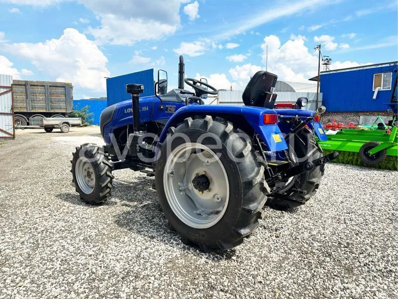 По техническим характеристикам Lovol HT-354 TE с реверсом является полноприводным, колесным (размер передних и задних колес в дюймах 7,5 – 16 и 12,4 – 24 соответственно). Рулевое управление регулируется гидравлическим приводом. Четырехтактный лицензионный двигатель с водяным охлаждением работает на дизельном топливе.